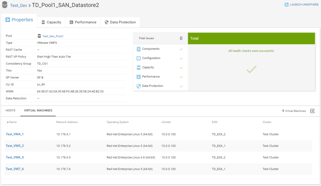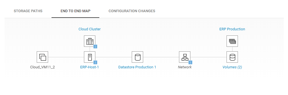 Customers who have tried to deploy monitoring tools understand that it’s very difficult to get the application/virtual machine footprint map in the data center. Usually this is very useful if you want to understand all the dependent infrastructure components which you application touches in the virtualization stack. CloudIQ gives you out of box functionality to provide virtual machine end-to-end map — from Virtual machine to storage volumes/LUNs