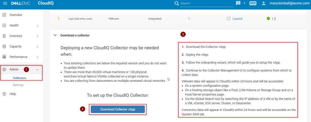 As I have already mentioned CloudIQ has integration with VMware for end-to-end monitoring for the virtualization environments. For enabling the CloudIQ to collect and report VMware data you need to download the CloudIQ collector, which can be downloaded directly from the CloudIQ portal (details below)