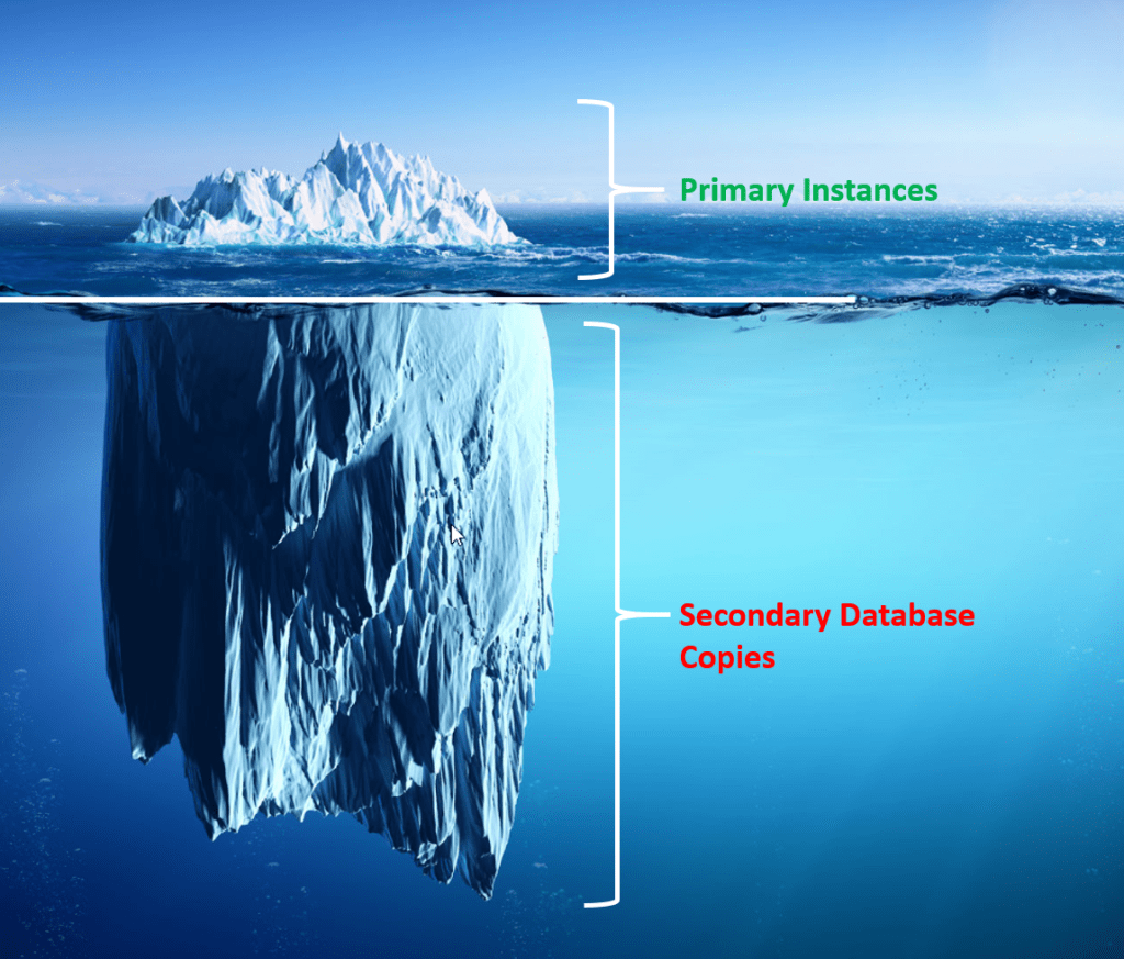 In simplified words this problem looks like the iceberg. People only count their production/primary database instances but secondary/re-purpose copies are usually taken for granted. If you do the quick math on IDC numbers you’ll quickly realize that this is one of the biggest operational issue in database environments.