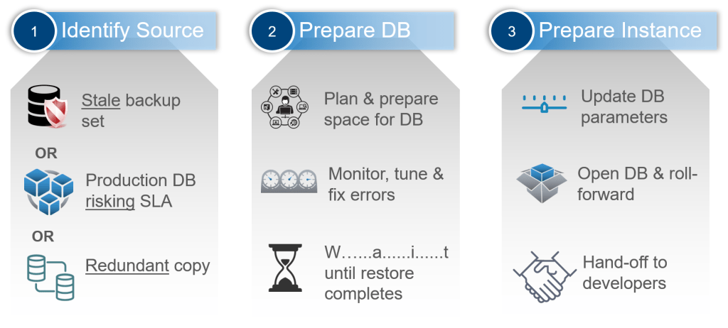 To simplify things even further – in most environments you follow 3 steps process for database copy creation.