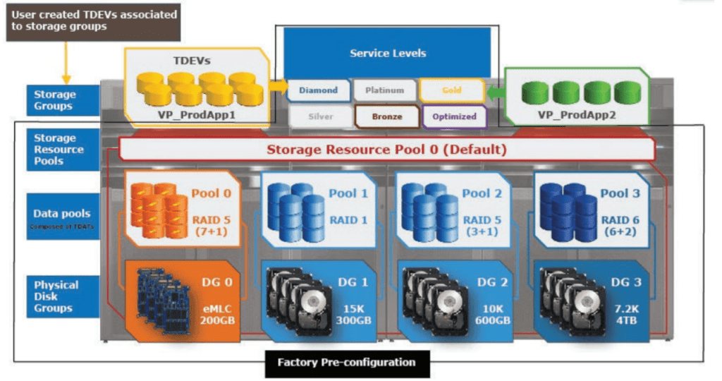 On a high level, you can refer to the below architecture diagram of Symmetrix family storage provisioning (applicable to PowerMax as well). This will give you heads up on different definitions and object names used in DellEMC PowerMax.