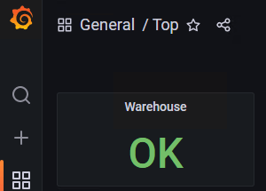 In my “Top” level dashboard I have currently a single Stat panel that shows us the health of a certain location, a “warehouse” in this case. There will be some metrics that we aggregate to produce this “health”. In the next article we will explore how to do that. For now this is how it looks: