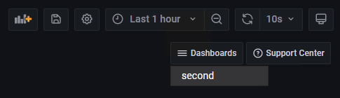 Finally “Save Dashboard” and once in the dashboard you should see something like this. Notice how I have clicked in the “Dashboards” button and the existing dashboards (which is only “second” in this case) are shown