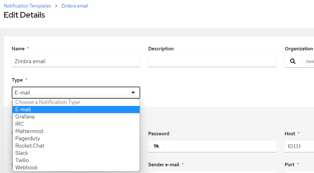 From an Ansible syntax perspective you can do error handling with things like “blocks and rescue” or other techniques. However, our guiding principle here is not so much to make sure the playbook continues despite errors and ends gracefully. What we want in this case is to make sure that both the engineer and/or user gets notified. For this purpose I find the “Notifications” functionality does the job nicely. You can find “Notifications” on the left bar under the Administration menu. If you click the “Add” button you get a menu like this